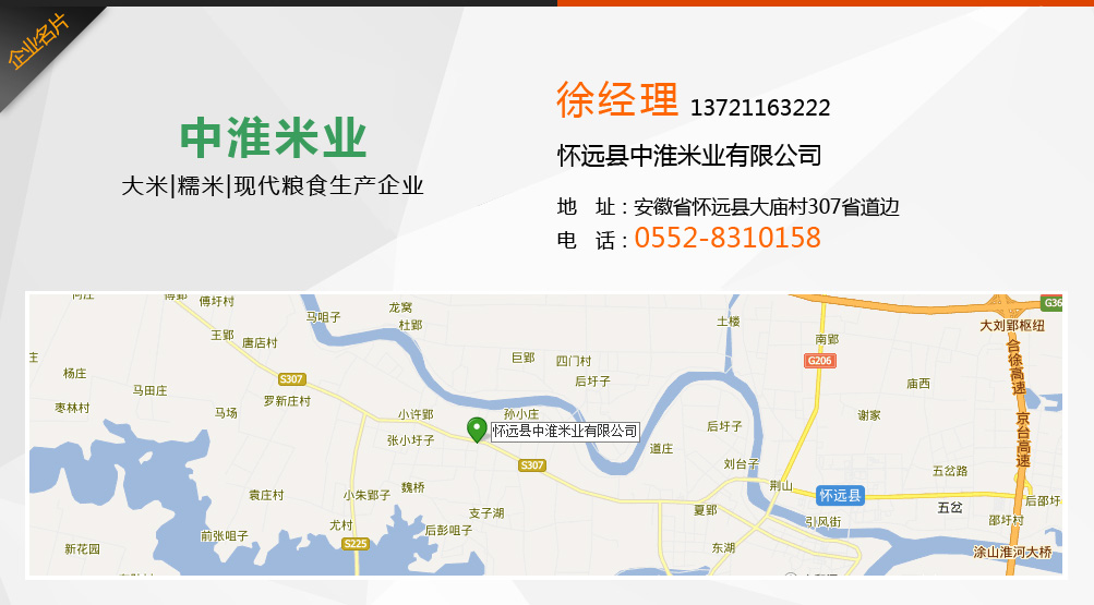 懷遠縣中淮米業有限公司,原懷遠縣中淮米廠,成立于2010年,企業位于懷遠縣大廟村,(懷遠縣城向西2公里)。地處淮河文化、大禹文化的發源地華北平原,京滬鐵路、合徐、京福、南洛高速公路穿境而過,淮河流域九條河流并列其間,陸路,水路縱橫東西連接南北,構成四通八達的交通樞紐。   公司是集糯米、水稻收購,大米、糯米精加工銷售于一體的股份公司。是致力于質量和推廣、加工和銷售為一體的現代糧食生產企業。公司注冊資金200萬元。公司擁有倉容為5000噸的專用糧食倉庫,1條日處理能力為200噸的進口低溫稻谷專用烘干線,1條糯米生產加工線日產糯米100噸。   公司現有固定員工25人,其中各類管理人員5人,專業技術人員3人,高技術人員2人,其中大專學歷及以上4人。公司設置有生產部、技術部、質管部、供應部、銷售部、倉儲部、辦公...